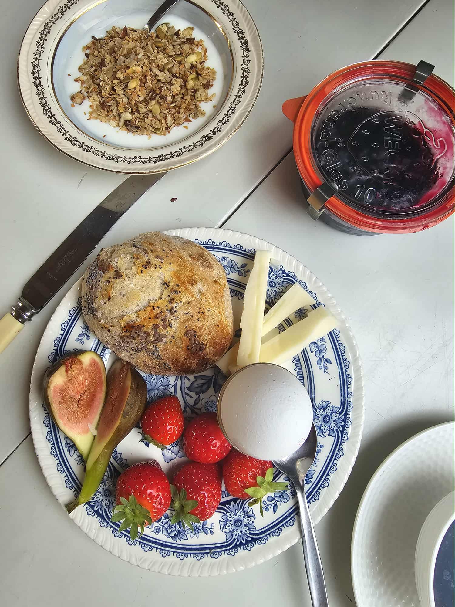 Vegetariske og nærende måltider serveres alle dage med fokus på enkelhed, ro og smag. Te, kaffe og vand er inkluderet.